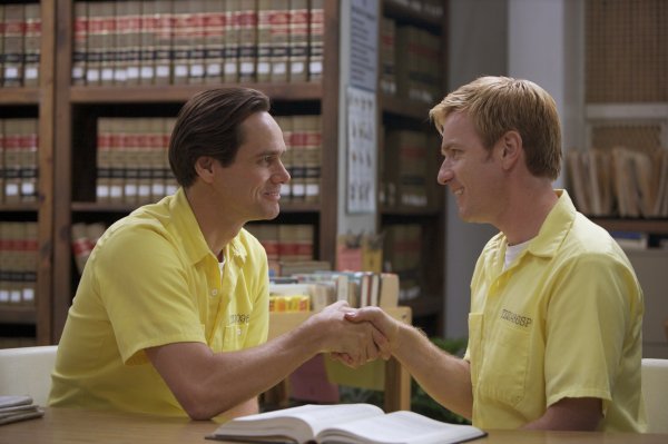 初めて刑務所内でジム=スティーヴンがユアン=フィリップを見たときのあの目!